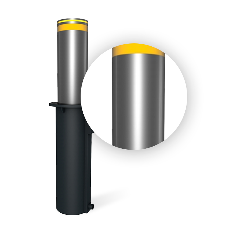 304不銹鋼柱身+高溫噴塑預埋桶,防腐蝕耐磨損,加厚柱體,壁厚可達6mm,防撞性能大幅提升。
